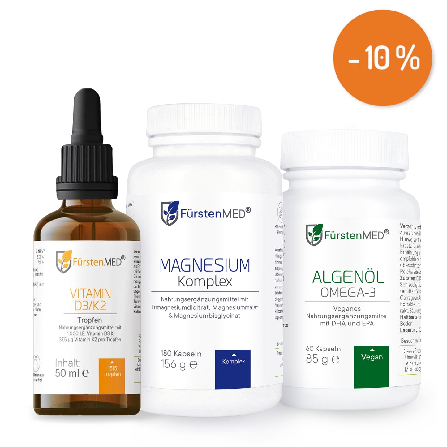 FürstenMED Grundversorgung - Set aus Magnesium + Omega 3 (Algenöl) + Vitamin D3K2