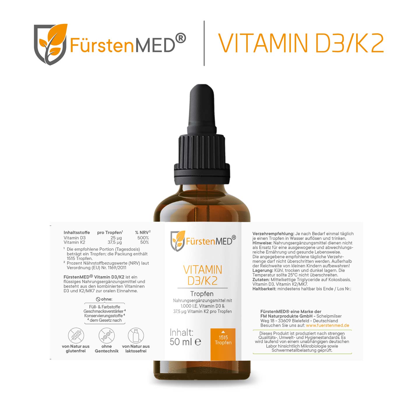 FürstenMED Vitamin D3 + K2 50ml (D3K2) kurzes MHD (31.01.2026) - 40% Rabatt mit dem Code: SONNE40